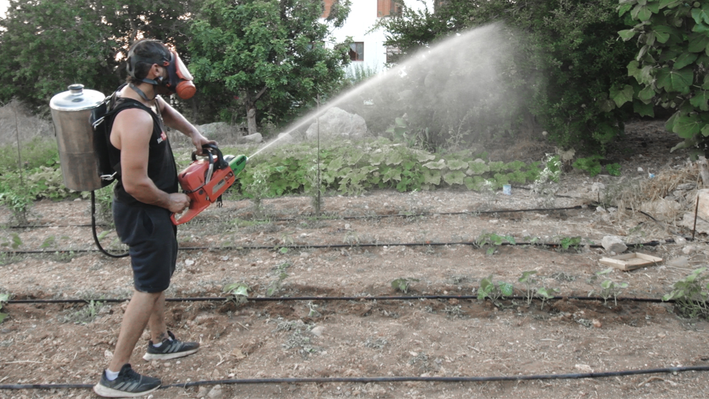 The construction with the number 0109 is an innovative adaptation on a chainsaw. This adaptation aims to use the chainsaw and as water compressor in order to clean the dirt and spray the plants and tall trees.