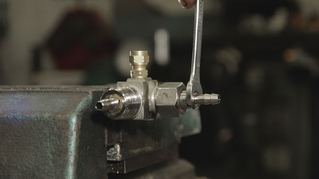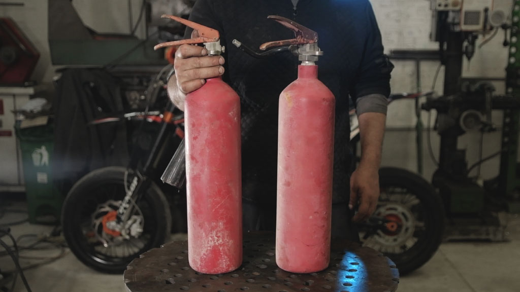 Finally, we placed a fast coupling before the point, where the air exits, on which we connect quickly and easily the tool that we need. Modifying the current valves existed on the old fire extinguishers, we found out a clever solution of the problem how the humidity can exit the tanks.