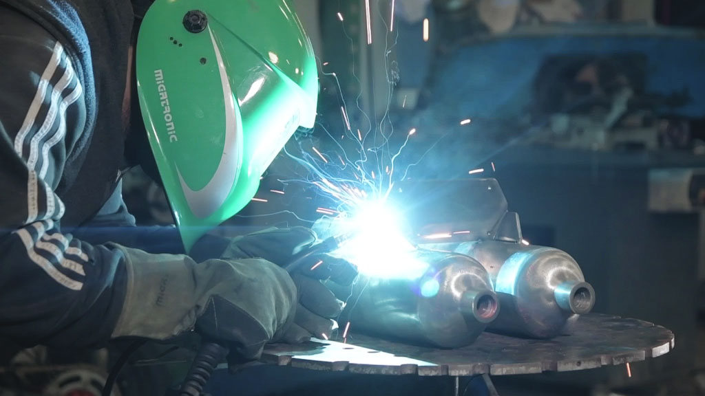 Initially, we used a 12v compressor to connect it on two 5litred- containers taken by old fire extinguishers. After we had connected the two containers the one with the other and with the air compressor, we put a pressure switch that switches off the compressor when it reaches 120psi pressure. Also, for our own safety, we put a relief valve 8-12 bar. Having supported by an air regulator, we are able to set the air pressure that exerts from the tanks according to the tool that we use the certain time.